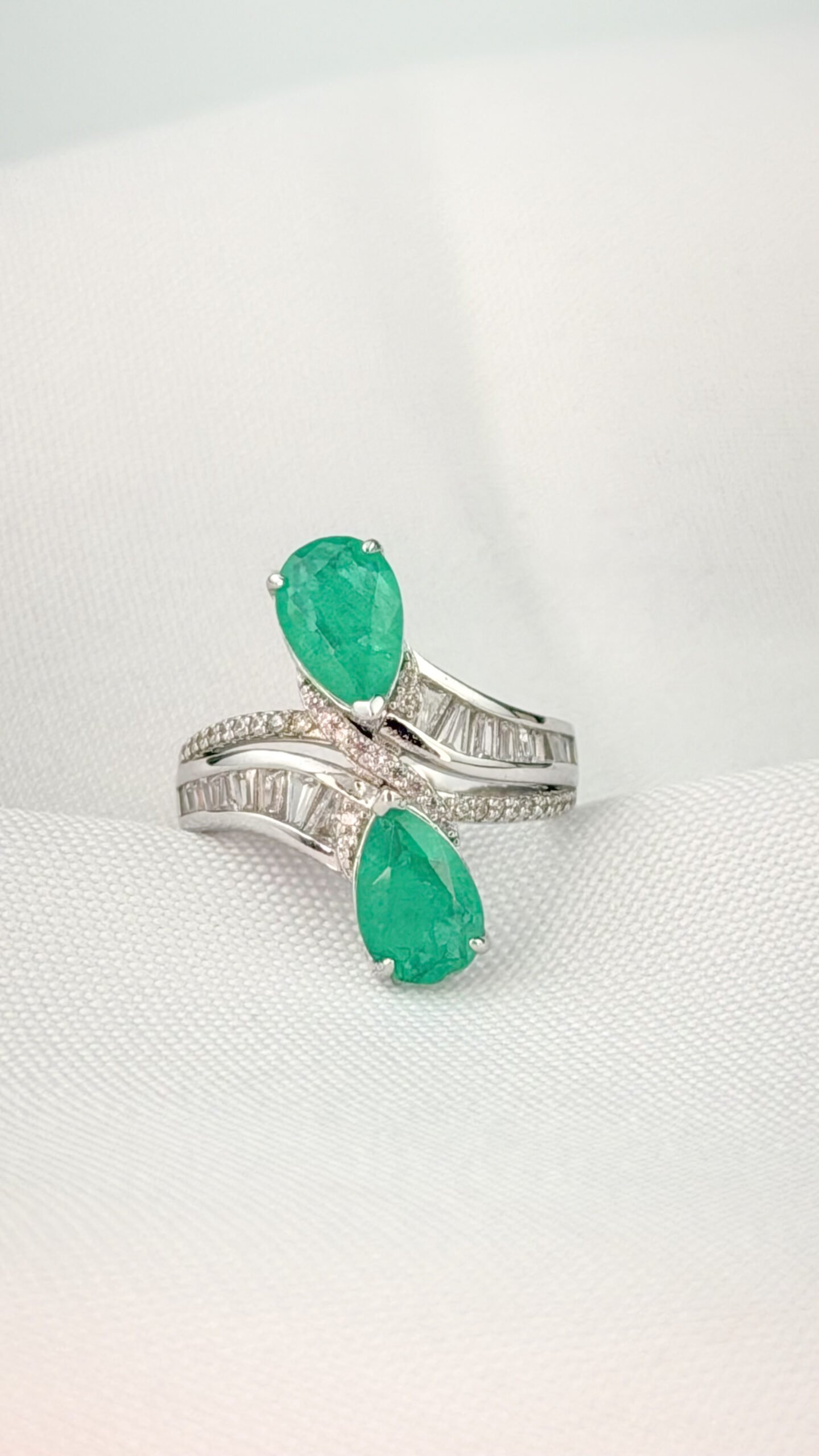 Anel em prata 925 com zircônias verdes lapidadas em formato oval, em composição moderna que valoriza o design da peça. Possui detalhes cravejados em zircônias claras, proporcionando brilho equilibrado e acabamento sofisticado. Um modelo marcante e elegante, ideal para quem busca um anel diferenciado, com presença e estilo. Pode ser usado sozinho como peça principal. Tamanho 15. Peça hipoalergênica, proporcionando mais segurança para a pele.