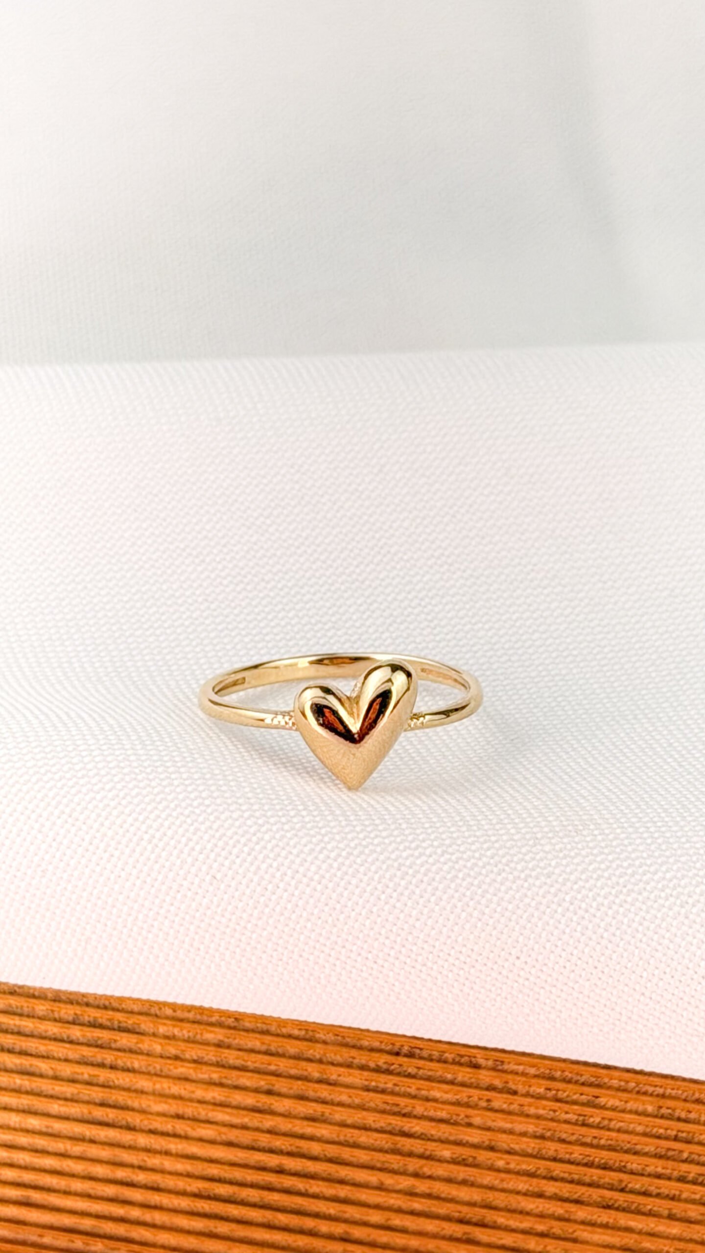 ANEL DE ARO FINO BANHADO A OURO, COM CORAÇÃO LISO EM ALTO BRILHO NO CENTRO. PEÇA DELICADA E ATEMPORAL, IDEAL PARA USO DIÁRIO OU PARA COMPOSIÇÕES ROMÂNTICAS E MINIMALISTAS. TAMANHO N17 E N13