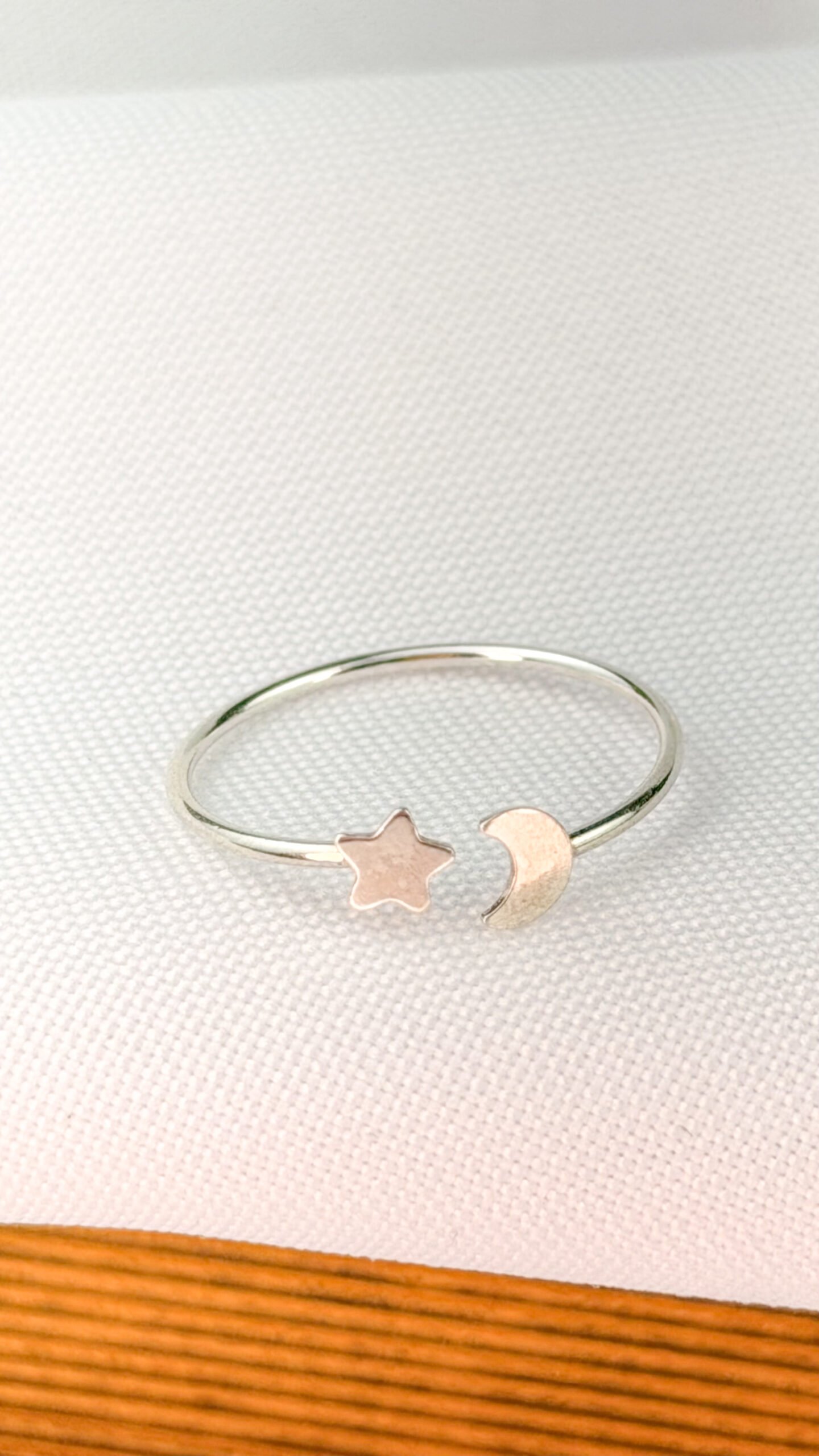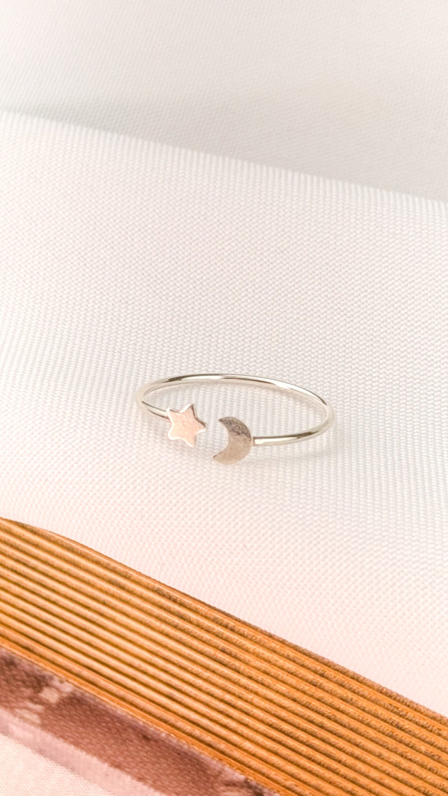 ANEL DE ARO FINO EM PRATA 925 COM DETALHES DE LUA E ESTRELA EM ACABAMENTO LISO. MODELO LEVE E DELICADO, IDEAL PARA USO DIÁRIO E PARA COMPOSIÇÕES MINIMALISTAS COM UM TOQUE SIMBÓLICO. TAMANHO N22