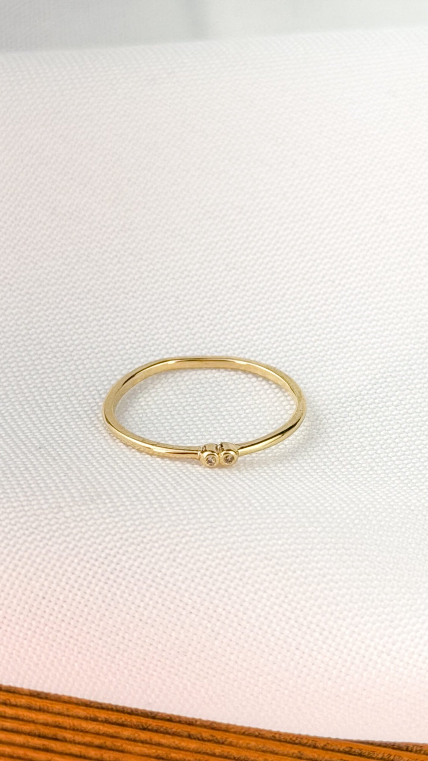 ANEL DE ARO FINO BANHADO A OURO, COM DOIS PONTOS DE LUZ EM ZIRCÔNIAS CRAVEJADAS EM DESTAQUE. MODELO MINIMALISTA E ELEGANTE, IDEAL PARA USO DIÁRIO OU PARA COMPOR MIXES DELICADOS COM SOFISTICAÇÃO. TAMANHO N15