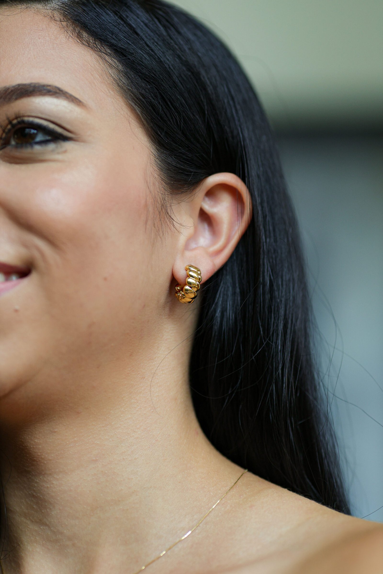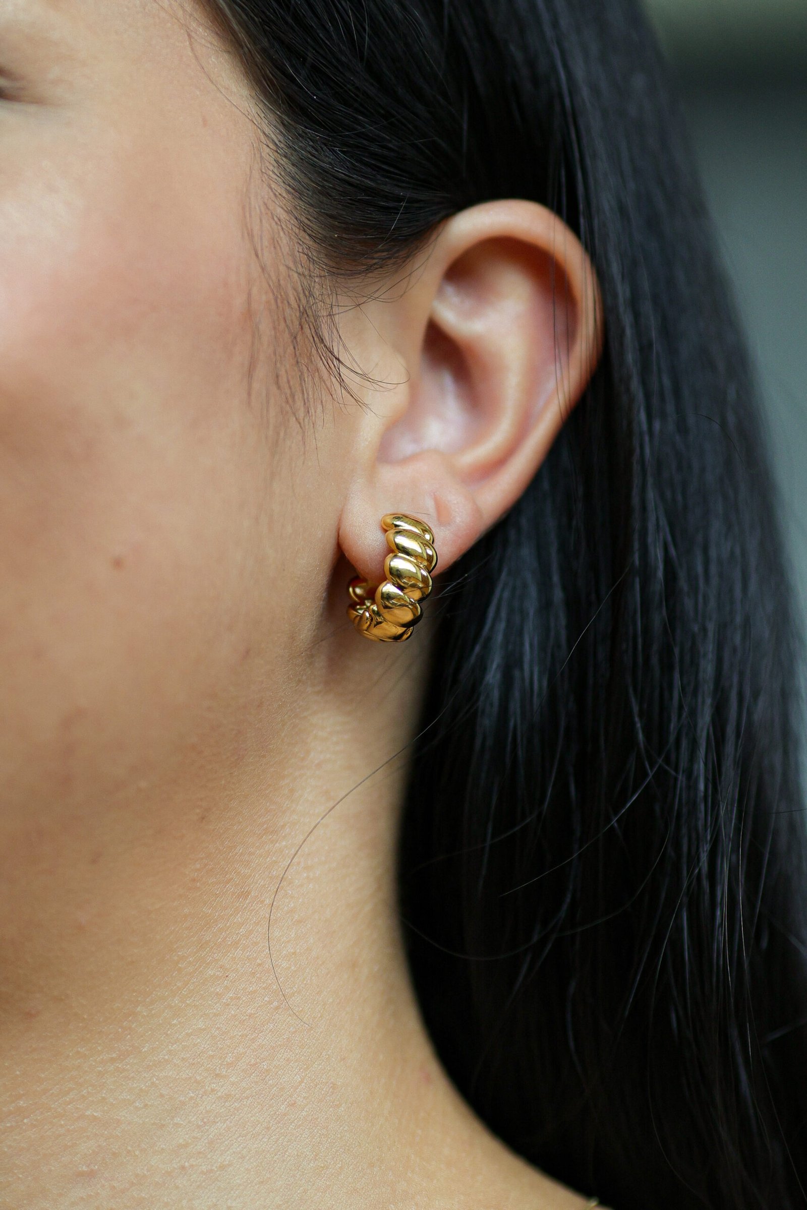 Argola torcidinha em banho ouro 18k com design torcido e acabamento polido, que confere brilho intenso e sofisticação à peça. Possui fecho click, proporcionando conforto e segurança no uso diário. Uma semijoia versátil e elegante, ideal para composições modernas ou clássicas. Peça hipoalergênica, proporcionando mais segurança para a pele.