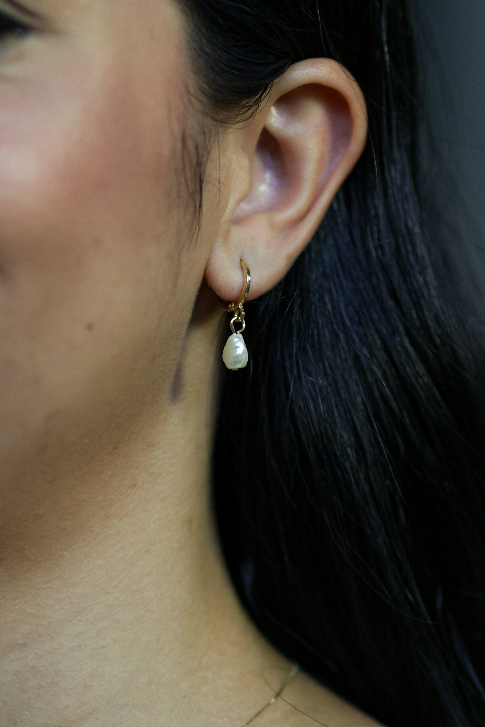 Brinco composto por Argola articulada e pérola em formato gota. Peça delicada e atemporal, ideal para composições elegantes no dia a dia ou ocasiões especiais. Peça hipoalergênica, proporcionando mais segurança para a pele.