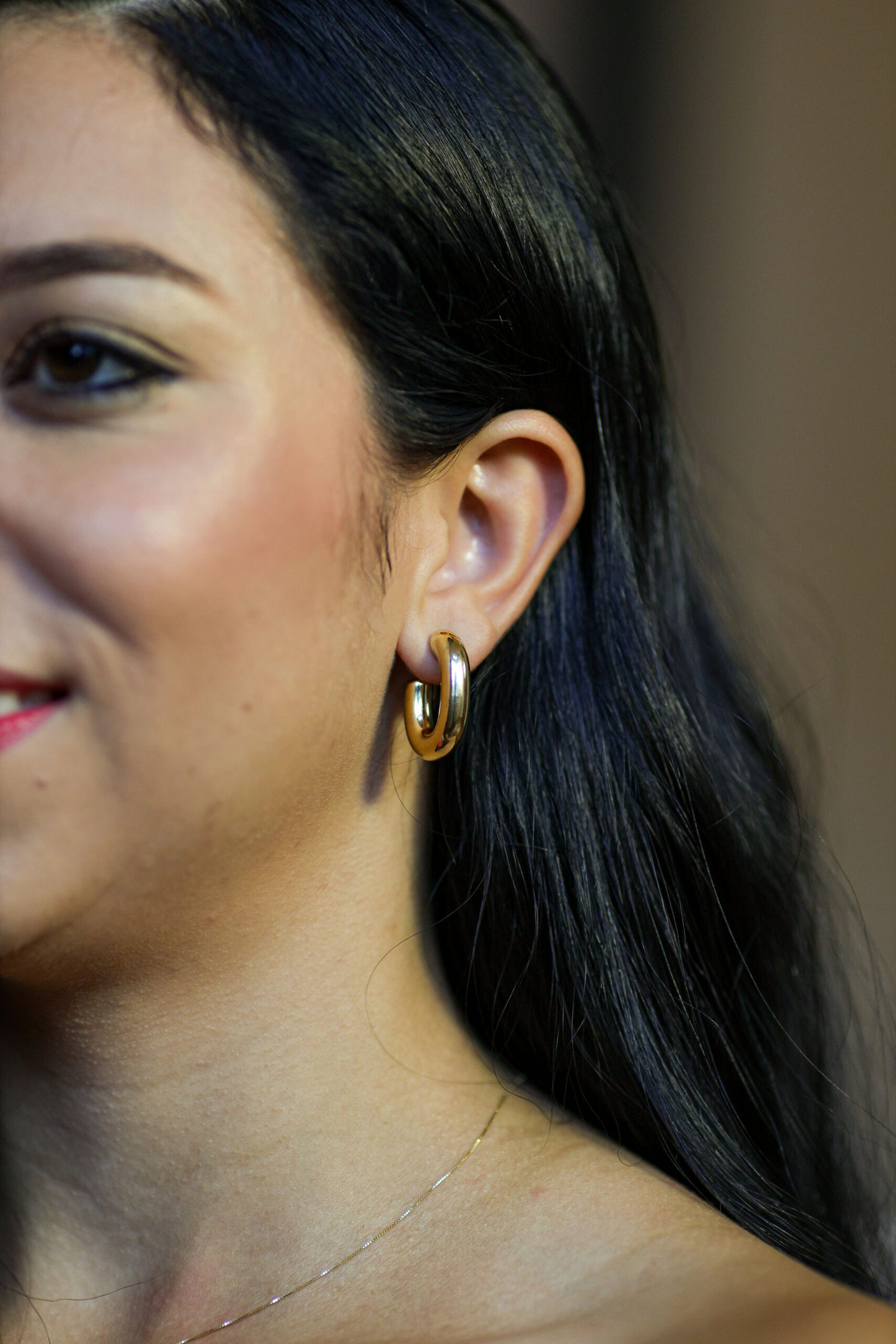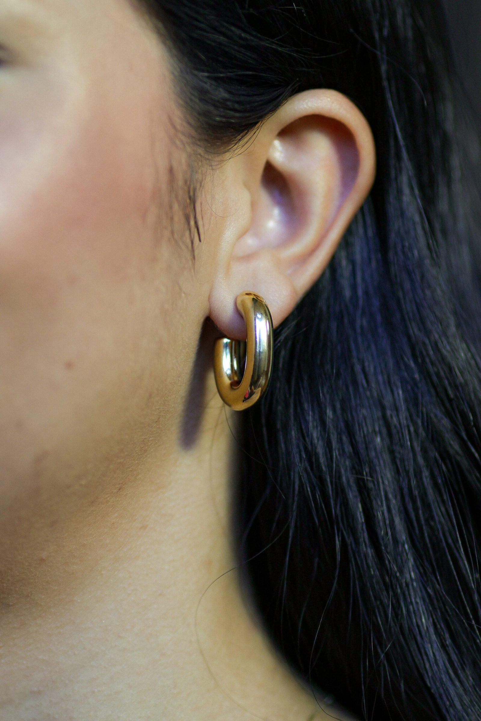 Brinco modelo argola em U com design orgânico e acabamento liso, moderno e elegante.