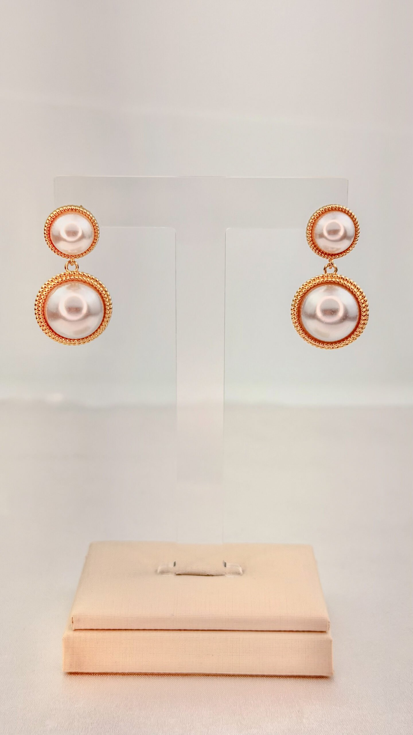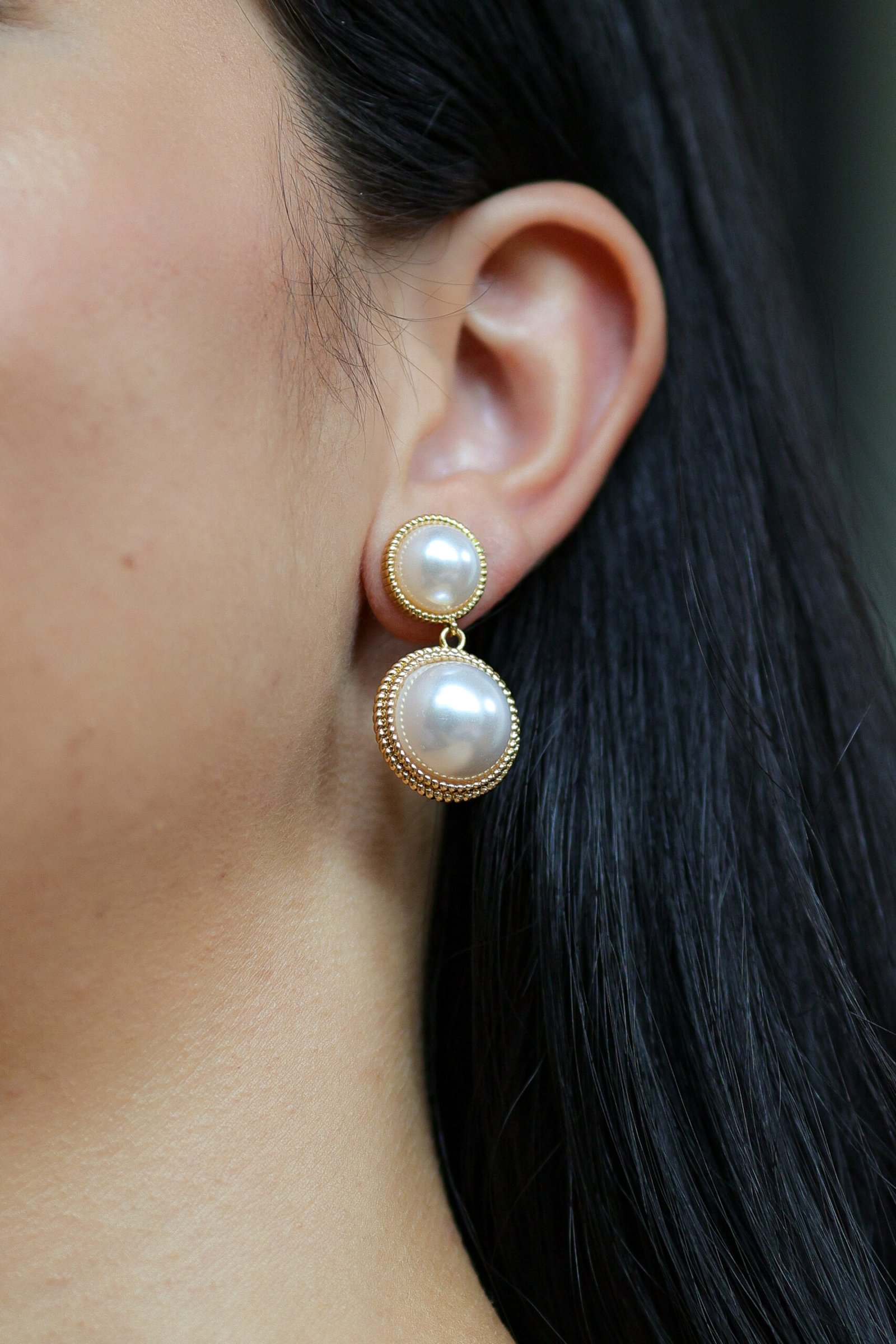 Brinco duplo com pérolas sintéticas de visual clássico, estruturadas em base trabalhada com banho em ouro. Peça elegante e atemporal, ideal para composições refinadas e ocasiões especiais Peça hipoalergênica, proporcionando mais segurança para a pele.