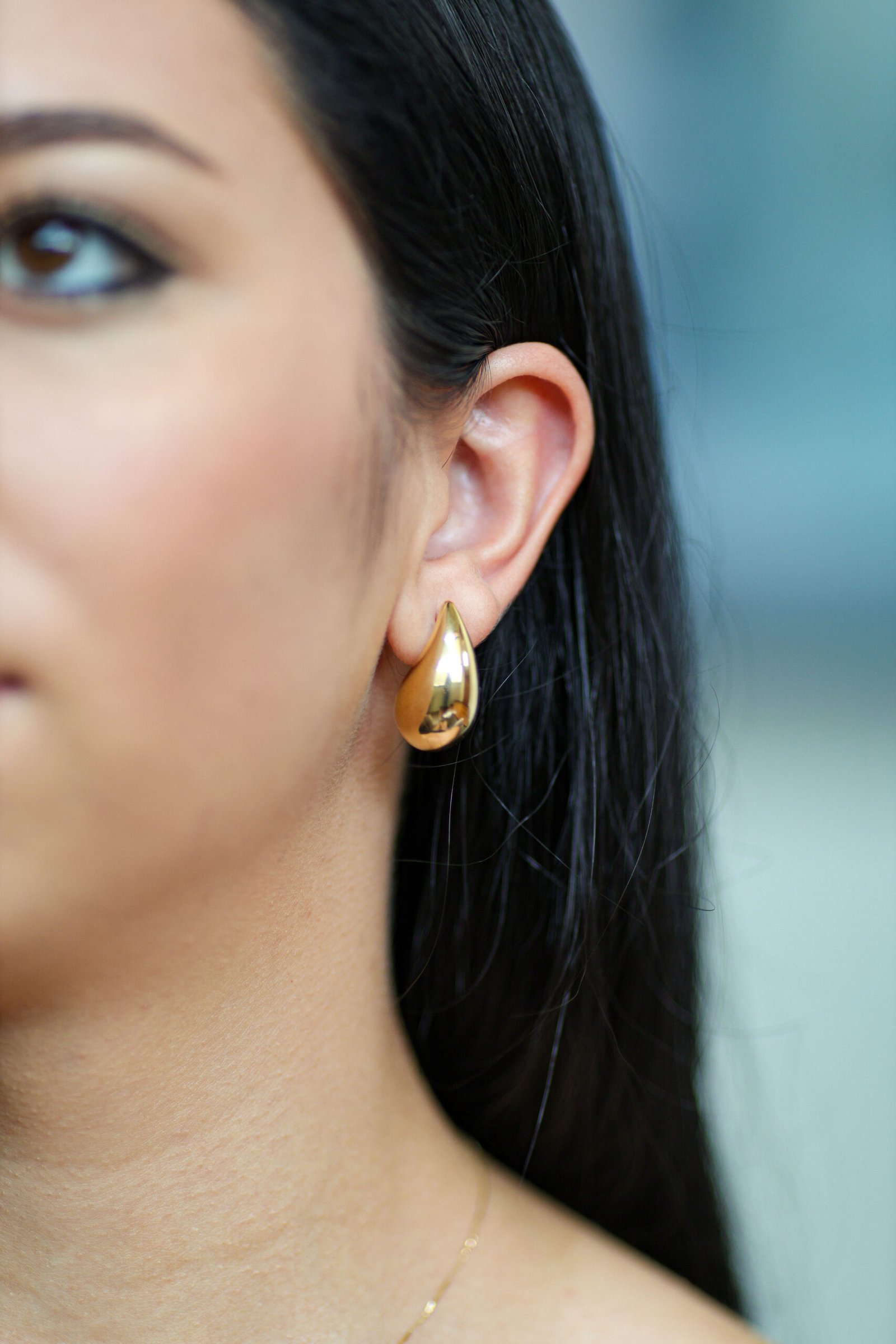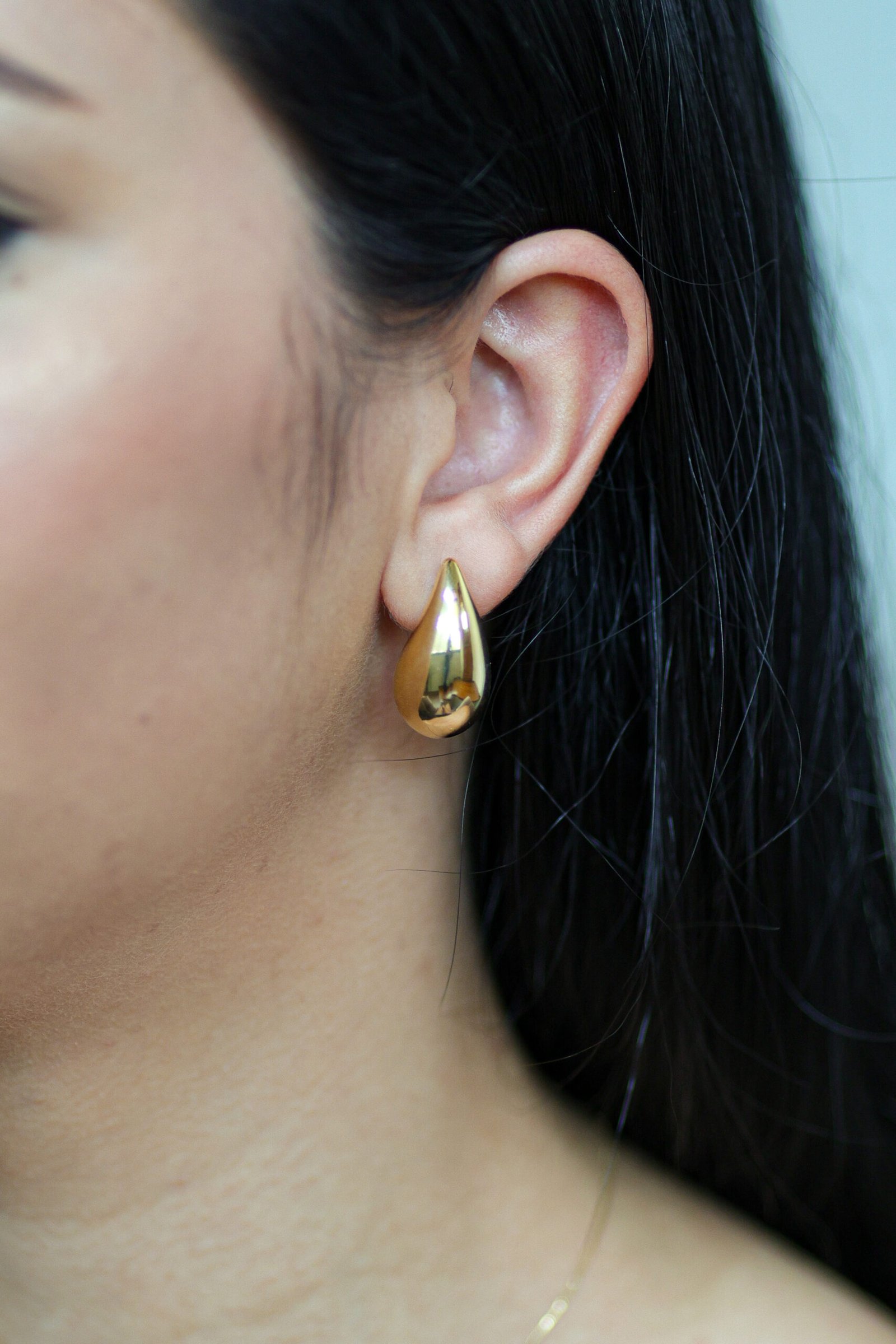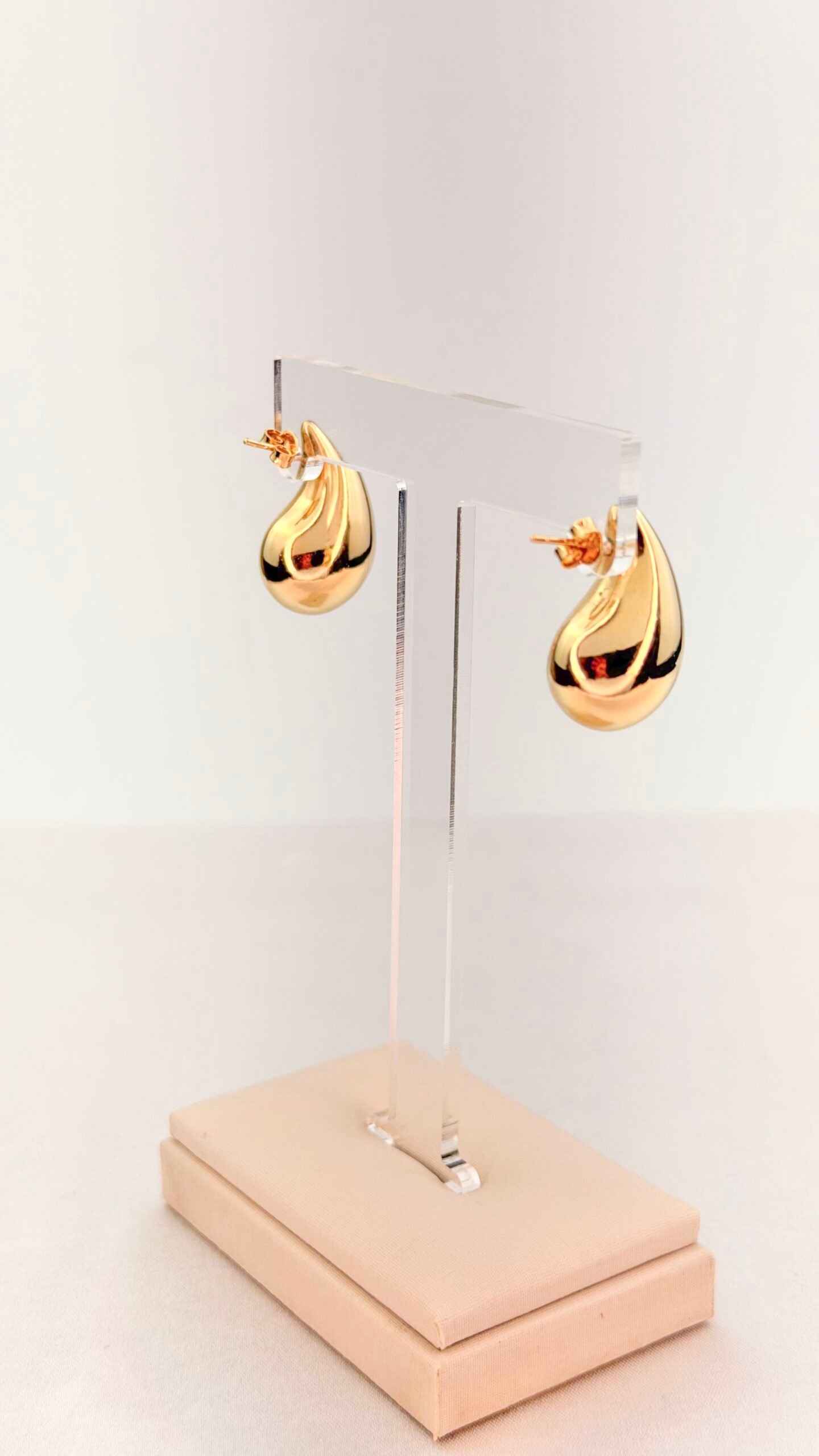 Brinco em formato gota com design e acabamento polido. Possui tarraxa e banho em ouro 18k, trazendo um visual elegante e contemporâneo. Ideal para compor looks sofisticados em qualquer ocasião. Peça hipoalergênica, proporcionando mais segurança para a pele.