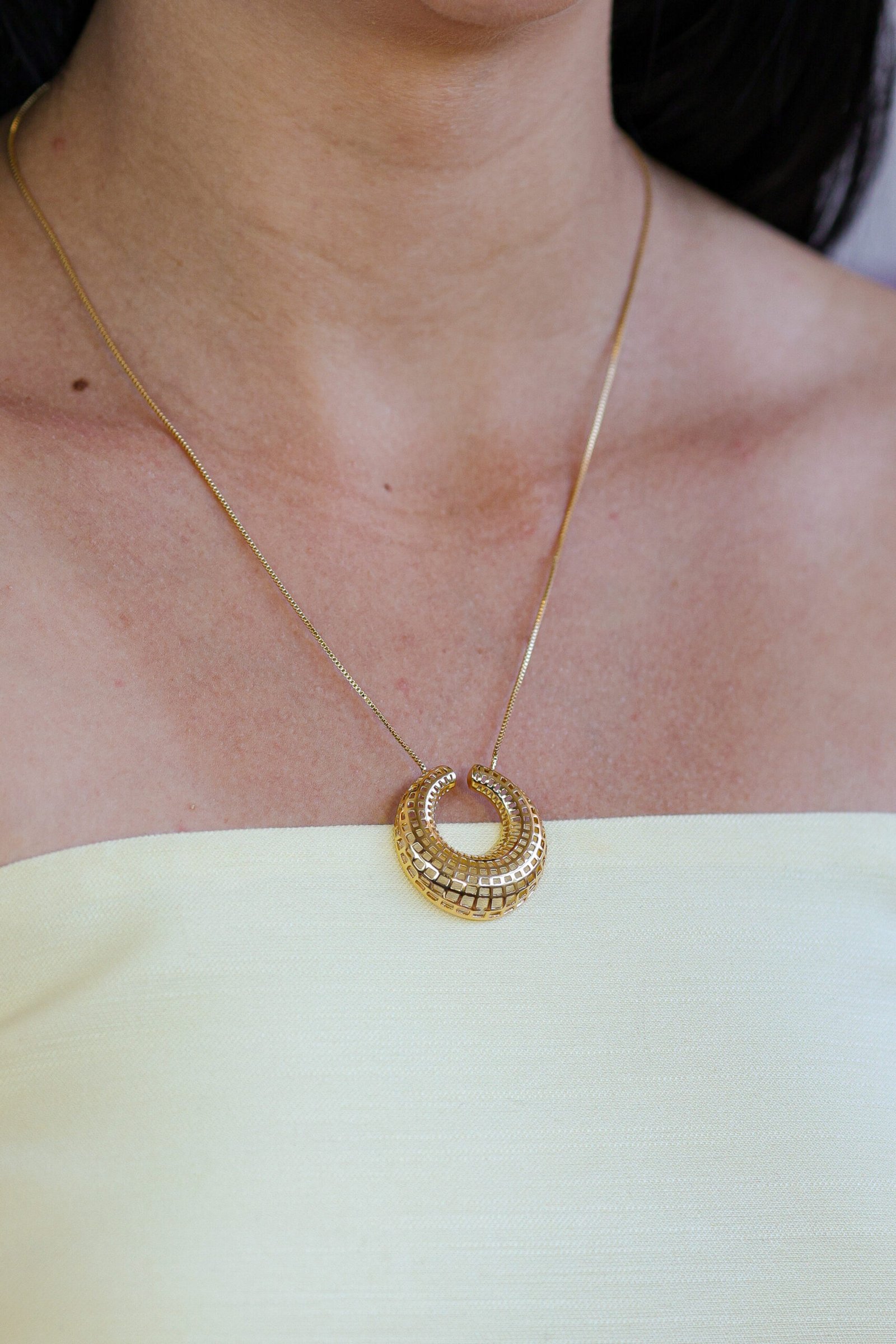Choker de estilo contemporâneo com pingente de formato orgânico e acabamento escultural, trazendo um visual sofisticado e atual. A peça recebe banho em ouro 18k, garantindo brilho intenso e acabamento refinado. Possui extensor que permite ajuste confortável ao pescoço, tornando-se uma escolha versátil para composições do dia a dia ou ocasiões especiais. Peça hipoalergênica, proporcionando mais segurança para a pele.