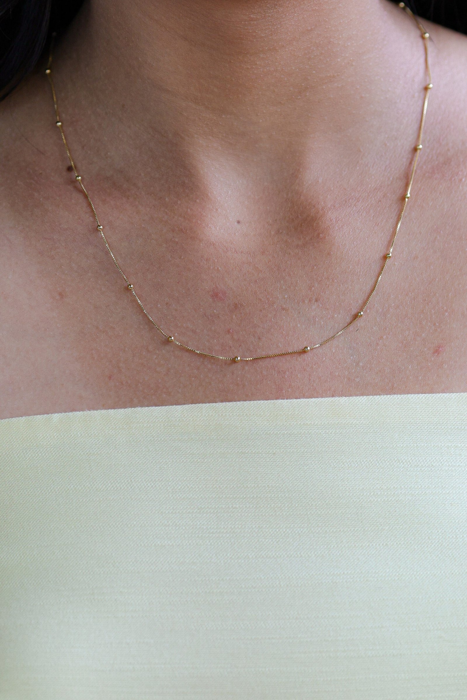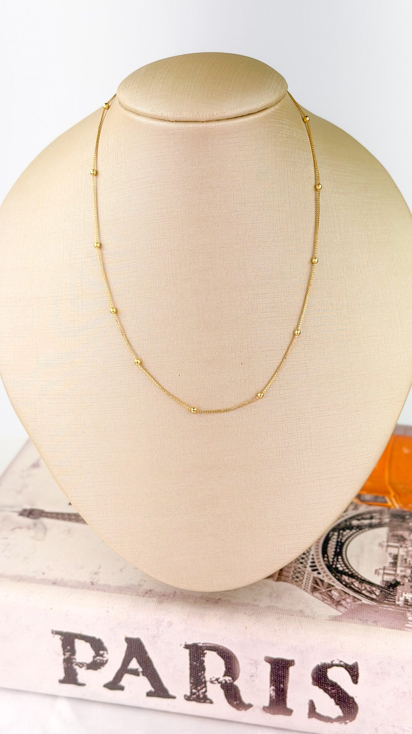 Colar em banho ouro 18k com corrente e bolinhas lisas.