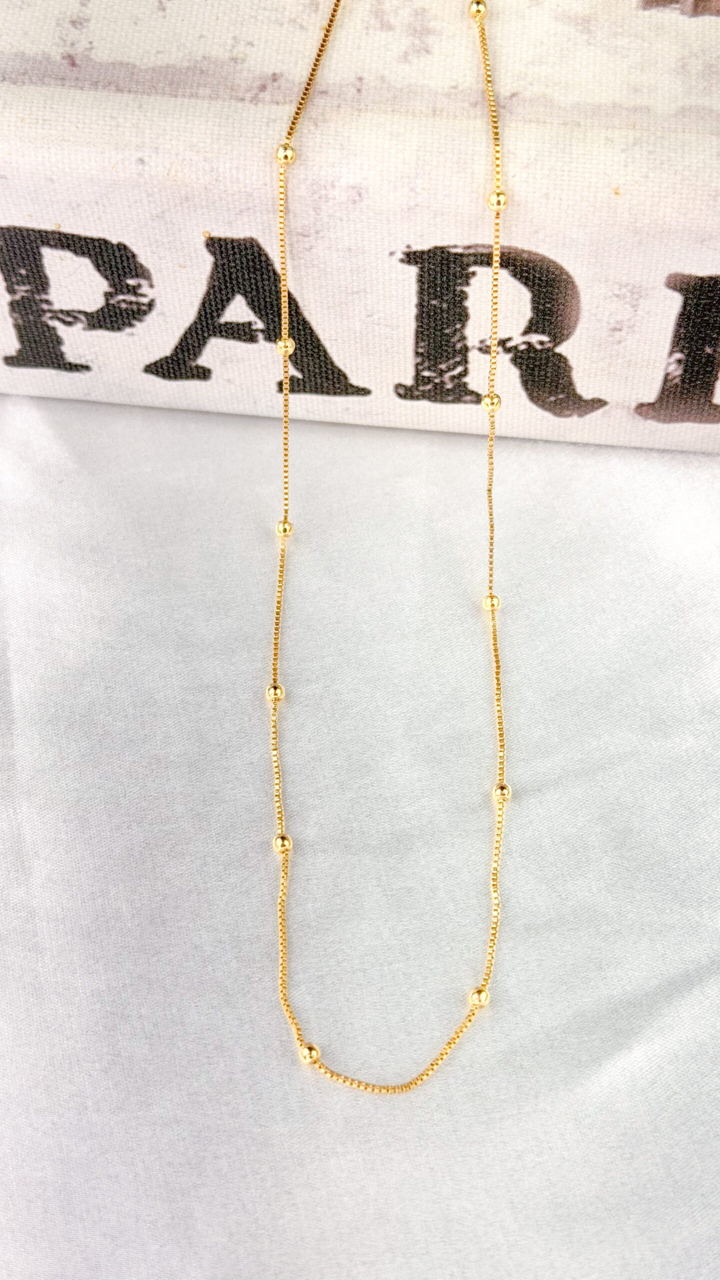 Colar em banho ouro 18k composto por corrente delicada com bolinhas lisas distribuídas ao longo da peça, com comprimento de 50 cm e sem extensor. Peça hipoalergênica, proporcionando mais segurança para a pele.