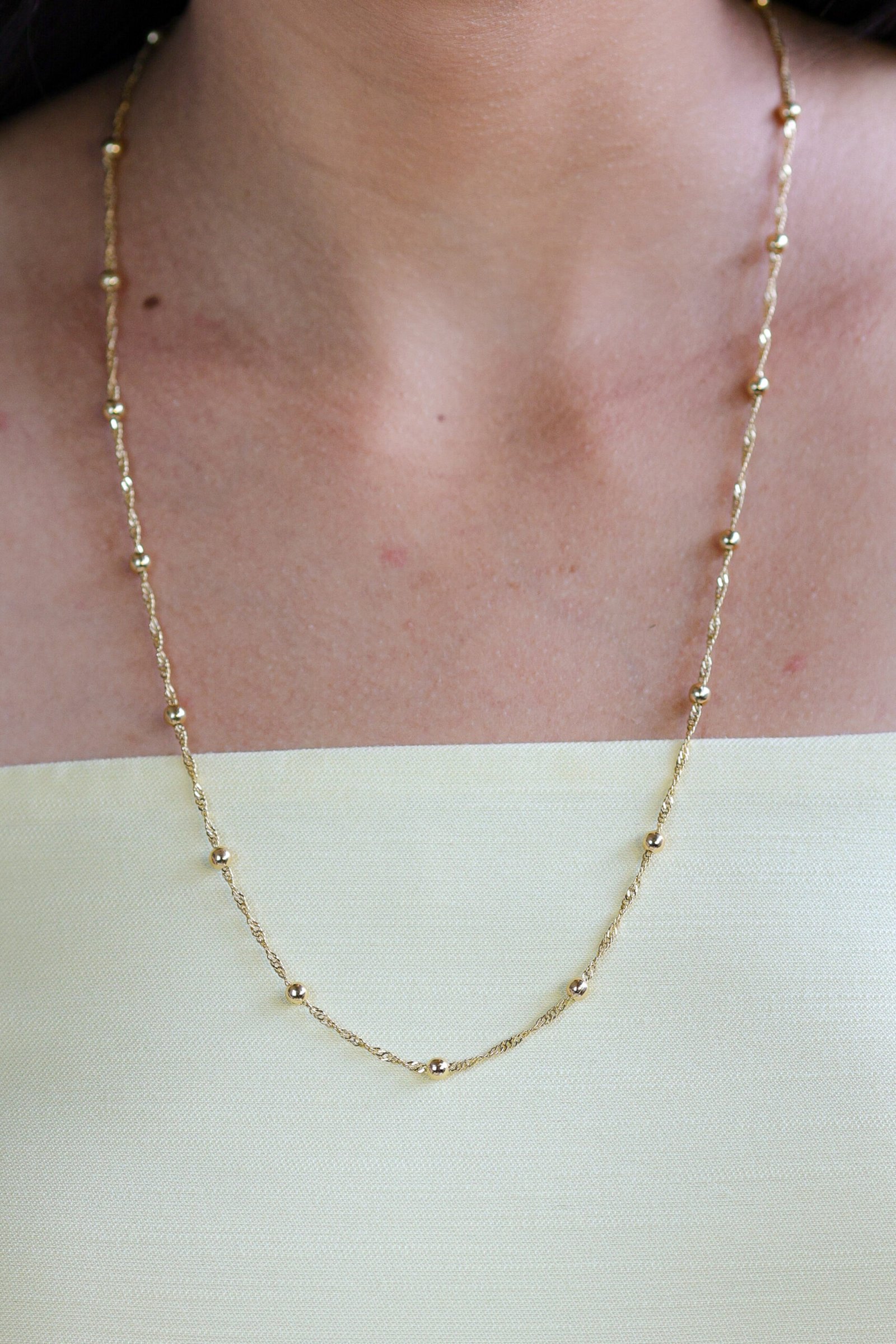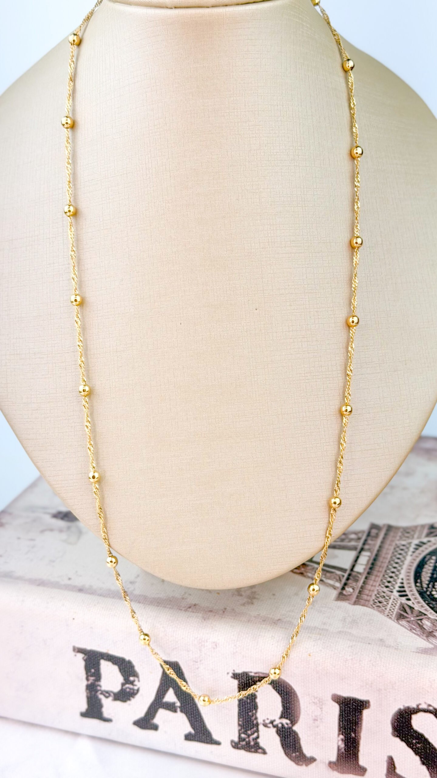 Colar em banho ouro 18k com corrente torcida e bolinhas lisas.
