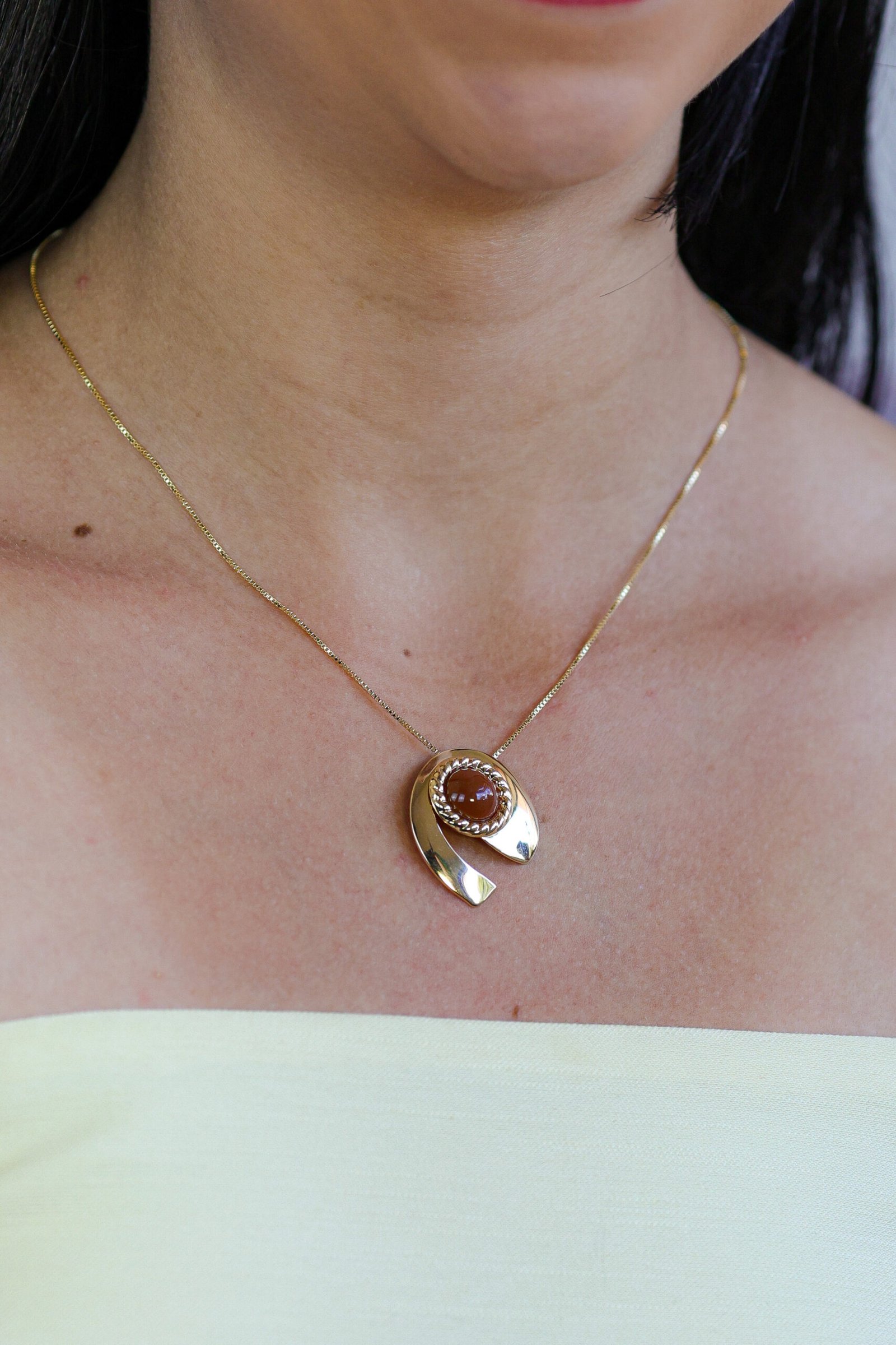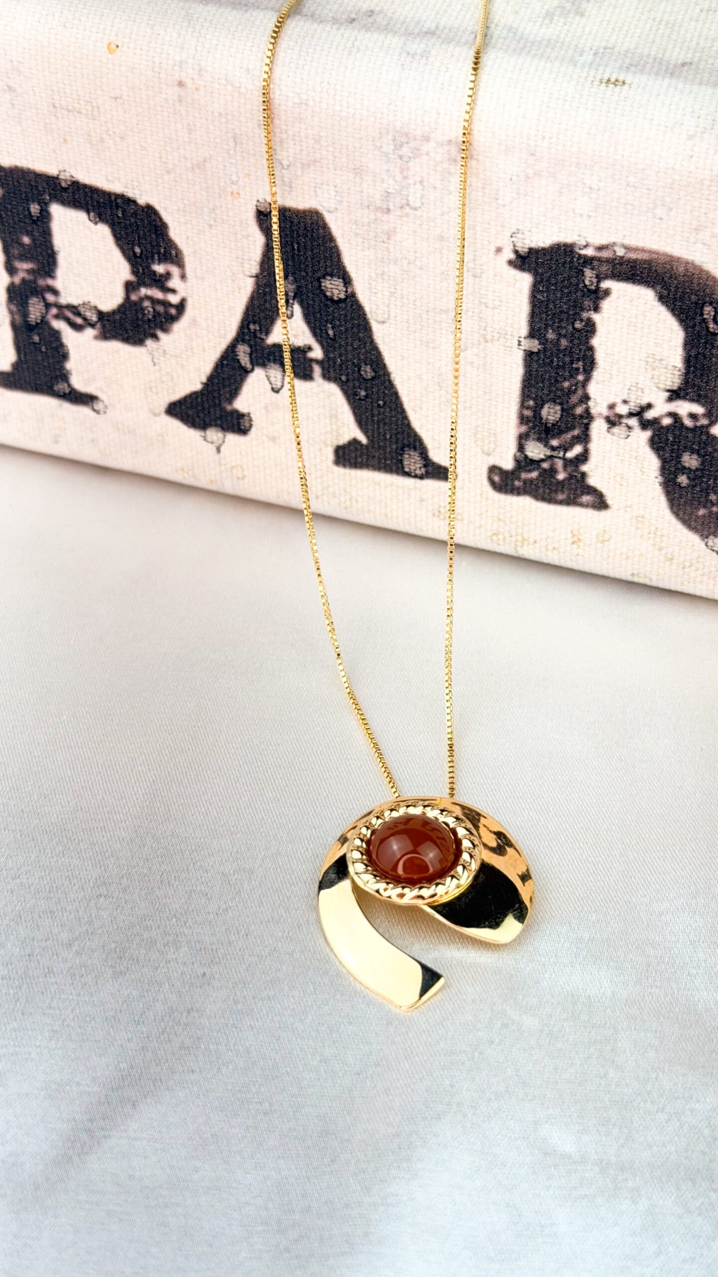 Colar com pingente de formato orgânico em estilo escultural, inspirado nas tendências mais sofisticadas de design de semijoias, com acabamento polido e banho ouro 18k que garante brilho duradouro. A corrente delicada, com 45 cm de comprimento, valoriza o colo e proporciona um visual moderno e versátil que transita do dia a dia a ocasiões especiais. Uma peça que combina arte e impacto visual para elevar qualquer produção. Peça hipoalergênica, proporcionando mais segurança para a pele.