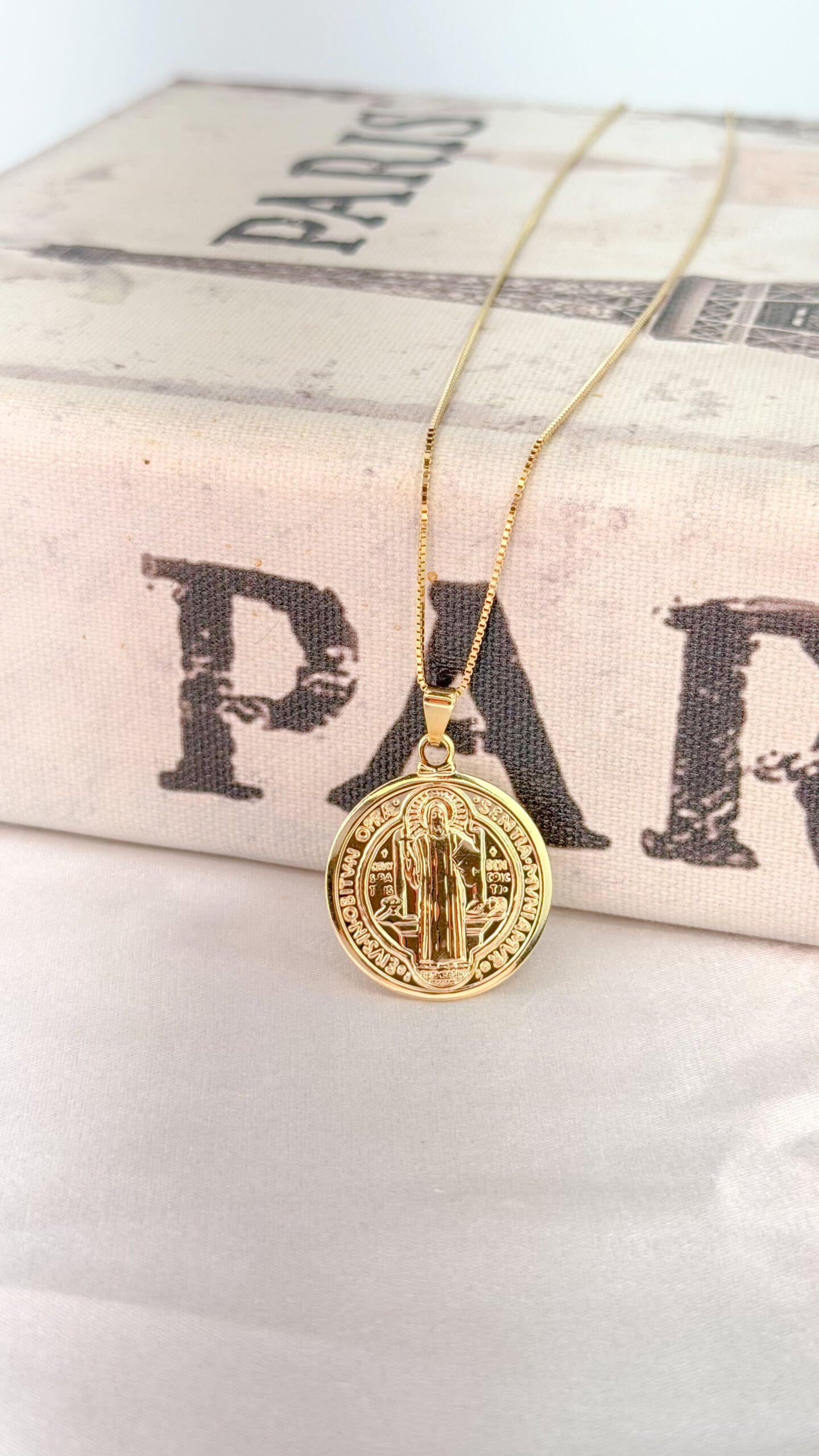 Seja o primeiro a avaliar “Colar Pai Nosso Medalha Religiosa Banho Ouro 18k”
