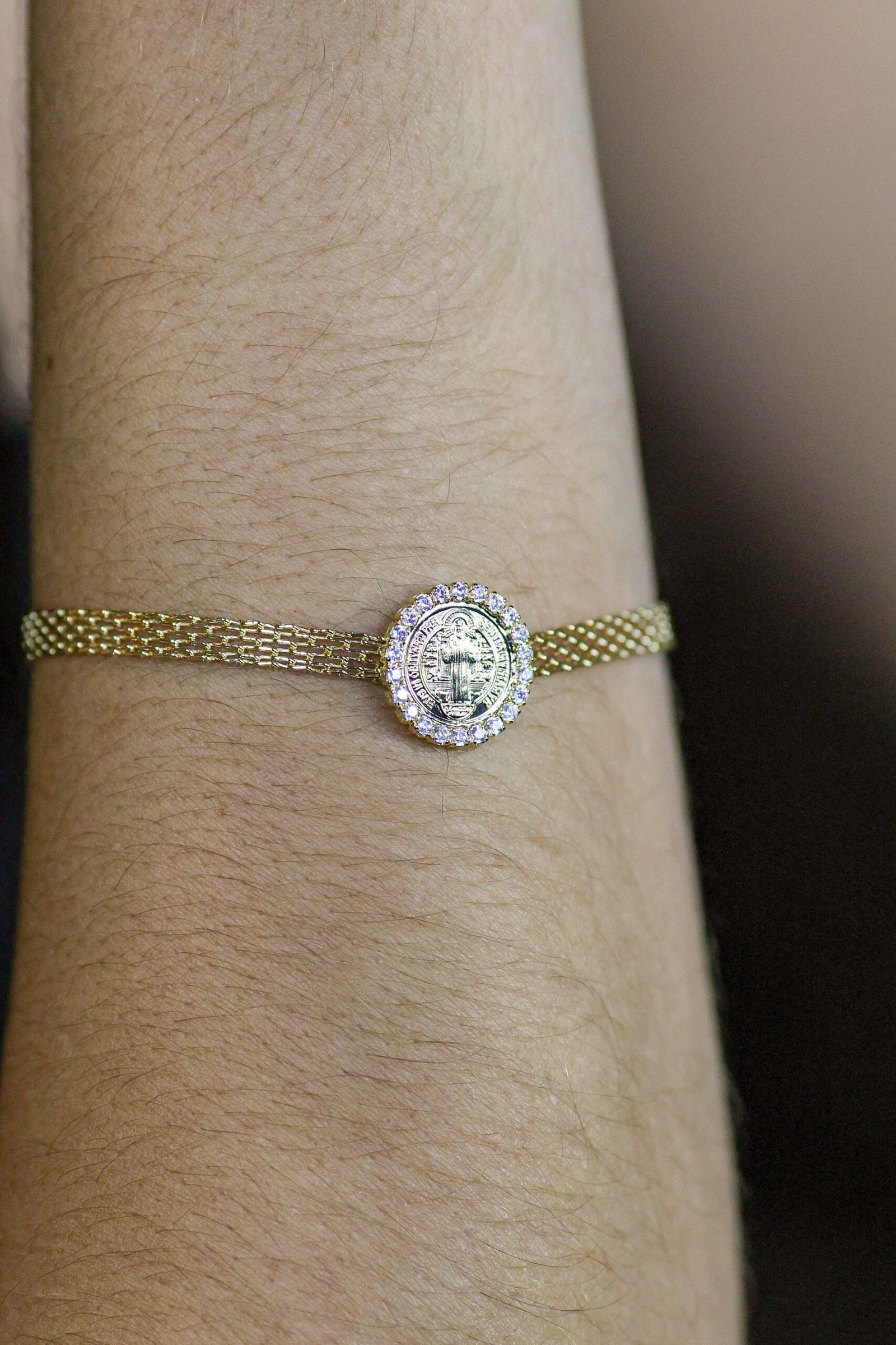 Pulseira com medalha São Bento e zircônias em banho ouro 18k