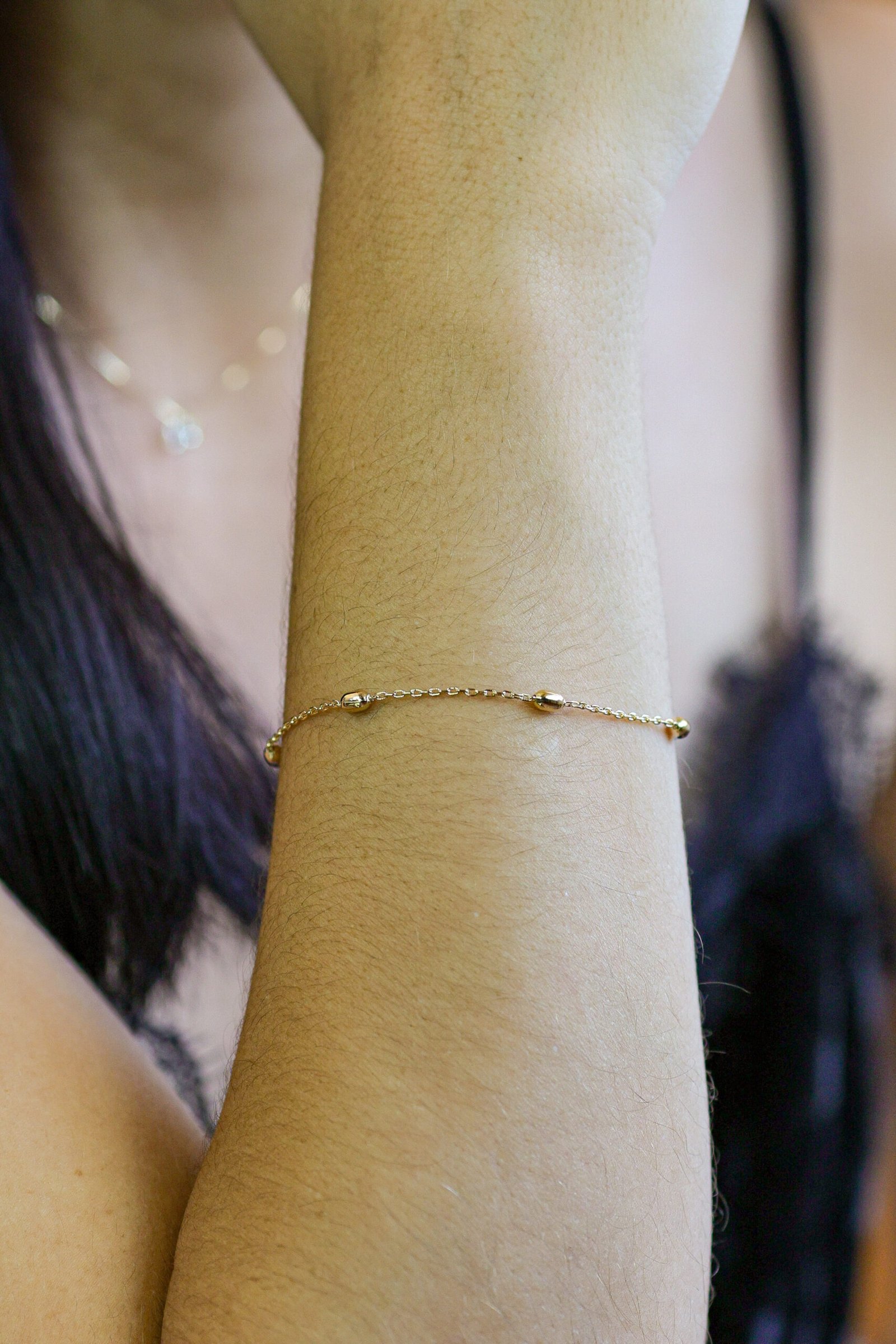 Pulseira delicada com bolinhas distribuídas ao longo da corrente.